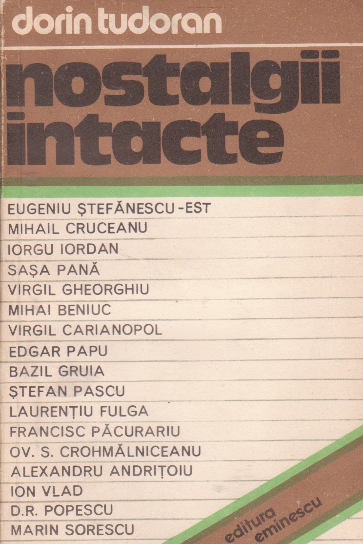 Comandă online cartea "Nostalgii intacte" la 10,50 lei scrisă de Dorin Tudoran, tiparită la editura Eminescu în anul 1982 cu un număr de 316 pagini. Livrare din stoc cu plata ramburs sau online cu cardul.