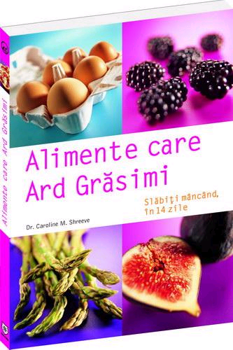 Fie că faceţi parte din categoria persoanelor care se gândesc la siluetă sau vreţi să slăbiţi din motive medicale, cartea Carolinei Shreeve, Alimente care ard grăsimi, vă va fi extrem de utilă.. Volumul conţine atât reţete dietetice, cât şi sfaturi practice pentru un regim de slăbire sănătos şi sigur. Cartea ne arată că nu se poate vorbi de regimuri proaste, ci doar de diete neadaptate specific şi care, de aceea, nu au rezultatele scontate. Luând ce este mai bun din diverse programe de slăbire, Caroline Shreeve concepe un regim de viaţă igieno-dietetic nou, care constă în două săptămâni de slăbire rapidă şi masivă, urmate de alte două săptămâni cu o dietă de stabilizare. Autoarea ne convinge că astfel se poate slăbi cu 8,5 kg în doar două săptămâni, dacă se recurge la o alimentaţie sănătoasă. Cartea cuprinde, de asemenea, propuneri de meniuri echilibrate, compuse din alimente hipocalorice ca bază ale unor preparate suculente şi uşor de realizat.