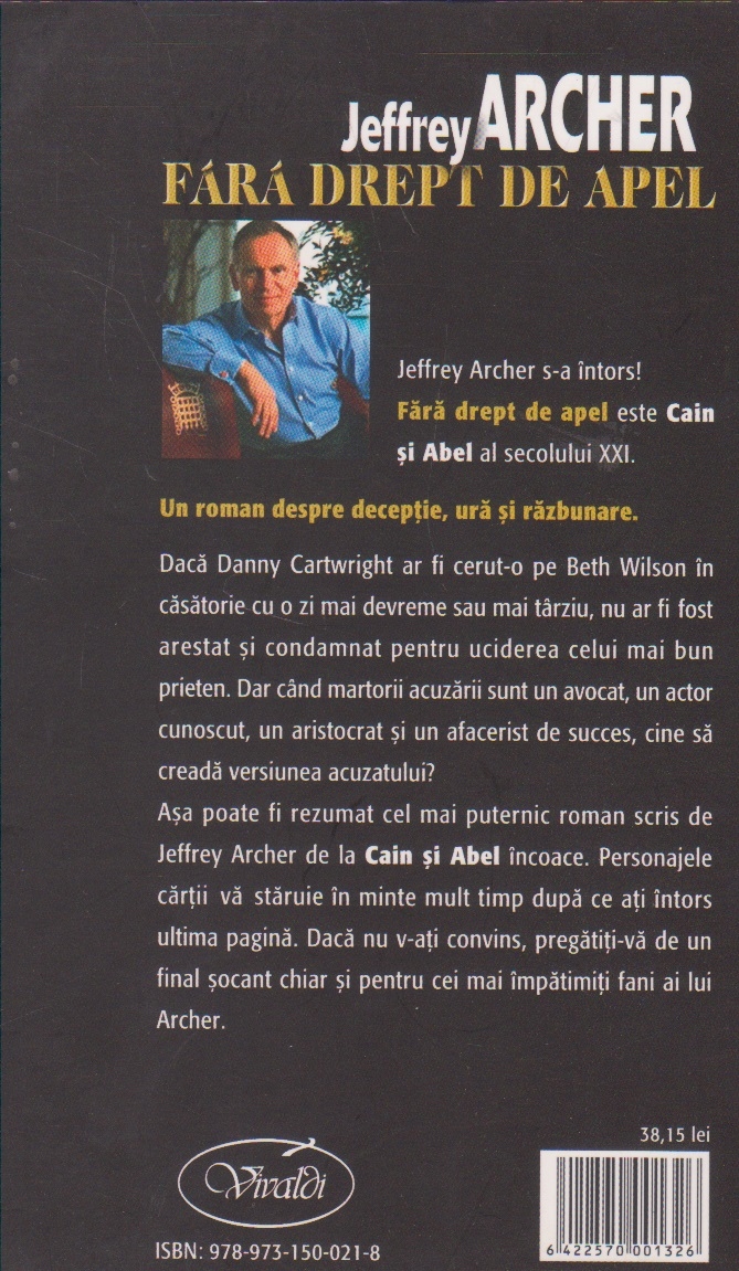 Aşa poate fi rezumat cel mai puternic roman scris de Jeffrey Archer de la Cain si Abel încoace. Personajele cărtii vă stăruie în minte mult timp după ce ati întors ultima pagină. Dacă nu v-ati convins, pregătiţi-vă de un final şocant chiar şi pentru cei mai împătimiţi fani ai lui Archer.