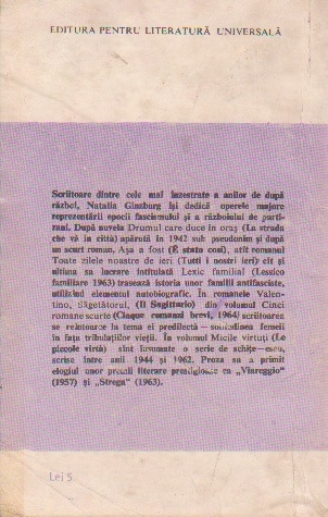 Comandă online cartea "Sagetatorul" la 4,10 lei scrisă de Natalia Ginzburg, tiparită la editura Editura pentru Literatura Universala face parte din colecția Meridiane în anul 1968. Livrare din stoc cu plata ramburs sau online cu cardul.