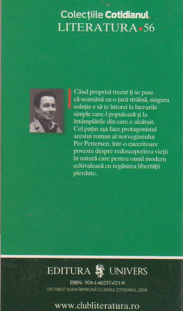 Inainte de a publica primul roman, Per Petterson, scriitor norvegian nascut în 1952, a lucrat ca muncitor necalificat, bibliotecar, librar si traducator.