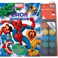 Omul-Paianjen, Cei Patru Fantastici, X-Men, Razbunatorii si Incredibilul Hulk apar cu totii aici, pe ecranul cinematografului vostru, dar si in cartea in care sunt prezentate povestile acestor super-eroi. Sunt prezentate uluitoarele intamplari prin care eroii au ajuns sa dobandeasca puteri neobisnuite, dar si cele mai palpitante aventuri prin care au trecut. Cartea, care cuprinde imagini color de o calitate extraordinara, este insotita de un proiector mobil si zece discuri cu imagini color. Astfel, copiii vor avea posibilitatea de a proiecta imagini pe perete, in timp ce citesc cartea. Proiectorul este prevazut cu o lampa de citit, astfel incat copiii se pot bucura de lectura si de imaginile proiectate, chiar si atunci cand luminile sunt stinse.