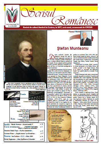 Revista „Scrisul Românesc“ a fost fondata în 1927, de catre criticul literar Dumitru Tomescu, si tiparita de editura cu titlul omonim, pâna în 1928. Prin structura, format si colaboratori, „Scrisul Românesc“ devine de la început o publicatie culturala interbelica importanta, alaturi de „Ramuri“ si alte reviste din perimetrul Olteniei. între colaboratori se numara Tudor Arghezi, Ion Agârbiceanu, Gib I. Mihaescu, N. M. Condiescu, Cezar Petrescu, Vasile Voiculescu, Ion Pillat, N. I. Herescu, Al. Marcu, C. Radulescu-Motru, Radu Dragnea, P. P. Panaitescu, Emanoil Bucuta, Al. Lascarov-Moldovanu, Al. Busuioceanu, Ion Dongozi, I. B. Georgescu, D. Tomescu. Seria a doua a revistei a aparut în ianuarie 2003, din initiativa profesorului universitar Florea Firan, redactor-sef al publicatiei si în prezent. Aparitia revistei este lunara, 16 pag., format 42 x 30 cm. Prestigiul seriei noi a revistei este dat de la început de catre un Colegiu editorial alcatuit din personalitati marcante ale vietii culturale din tara si din strainatate: Adrian Cioroianu, Andrei Codrescu, Irina Mavrodin, Eugen Negrici, Nicolae Panea, Dumitru Radu Popa, Dumitru Radu Popescu, mai apoi Daniela Crasnaru. Si nu orice colegiu editorial, ci unul activ, fiecare membru sustinând, constant, câte o rubrica, ceea ce creeaza posibilitatea realizarii, dupa un timp, a unui volum al fiecarui autor, în care sa fie reunite articolele publicate. Sase volume au si aparut: Andrei Codrescu, „Instrumentul negru“; N. Davidescu, „Poezii inedite“; Marin Sorescu, „Poezii inedite“; „Mircea Dinescu. Poezia insurgentei“ de Constantin M. Popa, Monica Spiridon, „Cum poti sa fii român?“. Variatiuni pe teme identitare; Irina Mavrodin, „Despre traducere. Literal si în toate sensurile“. în strategia culturala a revistei se gaseste intentia de permanentizare a unor rubrici individualizate, pe lânga cele consacrate de practica publicistica: Cartea-eveniment propune analizarea unor carti care ar putea deveni repere; O idee – rubrica initiata si sustinuta de Adrian Cioroianu – aduce în dezbatere aspecte de mare actualitate; sub genericul Idei si mentalitati, cititorul va descoperi subiecte controversate din miscarea filosofiei contemporane, iar Imaginar si rationalitate exploreaza relatiile subtile dintre realitate si virtualitate; în Logoterapia se abordeaza tema concurentei dintre cartea-obiect si formele sale virtuale de transmitere-receptare, continuata de rubrica Actualitatea capodoperei în care sunt comentati scriitori precum Voltaire, Hugo etc.; Cum scriem, cum vorbim este o rubrica optimizata pentru punerea în discutie a „vietii“ cliseelor, stereotipiilor si neglijentelor de limbaj; Restante este o rubrica propusa de Eugen Negrici si continuata, sub genericul Confruntari de Ovidiu Ghidirmic si se refera la lucrari ramase în momentul aparitiei fara ecoul meritat sau la unele aspecte teoretice; o sectiune intitulata Inedite are darul de a activa pagini relevante pentru istoria literara, de 4 ani avându-l protagonist pe Marin Sorescu; Din partea cealalta, rubrica propusa de scriitori stabiliti în afara tarii, mai exact de Dumitru Radu Popa, se doreste un spatiu de interculturalitate, iar Corespondente lirice electronice, propusa de Carmen Firan, o completeaza. Petre Rado sustine rubrica Cronica de film. Dinamismul centrului universitar, al institutiilor artistice, de spectacol si cele muzicale, asigura suficient material care se regaseste cu generozitate în paginile revistei. Scrisul Românesc se doreste atât o tribuna de promovare a Editurii cu acelasi nume, o vitrina a noilor aparitii, deschisa prin demersul critic si eseistic asupra cartilor, si a proiectelor editoriale, o întâlnire cu autorii si colaboratorii editurii, dar si un dialog permanent cu valorile culturii române aflate în tara sau strainatate si, nu în ultimul rând, o panoramare a fenomenului artistic, academic, stiintific al Craiovei în contextul national si universal. Privita în ansamblu, revista cuprinde în mod echilibrat, compartimente si rubrici permanente în care se regasesc poezia, proza, critica si istoria literara, cronici si recenzii de carti, literatura straina, o pagina de inedite, articole pe teme de educatie si cultura, si arte, de filosofie, istorie, evenimente culturale în tara si în strainatate (cu permanenta din New York, Paris, Venetia), prezentare de carti si reviste. Spiritul multicultural, diversitatea si calitatea colaboratorilor, consistenta textelor publicate, evenimentele culturale din tara si strainatate dau nota originala si forta publicatiei prin care se distinge în peisajul publicistic românesc. Colaboratorii de baza ai noii serii: Monica Spiridon, Irina Mavrodin, Andrei Codrescu, Nina Cassian, Carmen Firan, Adrian Cioroianu, Petre Rado, Gabriel Cosoveanu, Ovidiu Ghidirmic, Constantin M. Popa, Dumitru Radu Popescu, Ioan Lascu, Ion Parhon, Dumitru Radu Popa, Adrian Sângeorzan, Ion Buzera, Victor Ivanovici, Nicolae Panea, Florin Rogneanu, Victor Marian Buciu, Cecilia Capatîna, Ionel Buse, Geo Constantinescu, Felicia Burdescu, Cosmin Dragoste, Mihai Ene, Irina Cucu, Maria Tronea, Dan Ionescu, Horia Dulvac...