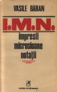 Comandă online cartea "I. M. N. - Impresii, microsioane, notatii" la 20,10 lei scrisă de Vasile Baran, tiparită la editura Cartea Romaneasca în anul 1981 cu un număr de 383 pagini. cu plata ramburs sau online cu cardul. Momentan titlul "I. M. N. - Impresii, microsioane, notatii" nu este disponibil însa vă puteți înscrie pentru a fi notificat în momenul reaprovizionarii.