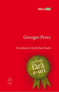 Dispariţia, tradusă în peste zece limbi, de fiecare dată respectând convenţia literei lipsă, este o carte-hibrid, ca mai toate specimenele literare ieşite din laboratorul Perec, artist care, pe lângă scris, a testat şi cinematografia experimentală. Parodie cu accente noir, întorsături de situaţie şi echilibristică de stil, toate acestea sunt dublate de straturi subtile în care este pusă voalat în discuţie însăşi formula textului şi constrângerile lipogramatice. Tradus în limba română de Şerban Foarţă, jucător „de categoerie grea" când vine vorba de experimente imposibile la prima vedere, romanul Dispariţia este, de la primul la ultimul rând, nu doar o provocare marca Perec, ci şi o demonstraţie ca la carte despre îmblânzirea limbii române.