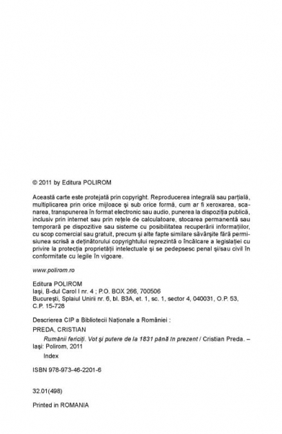 Rumânii fericiți. Vot și putere de la 1831 până în prezent (ediţia a II-a revăzută şi adăugită)