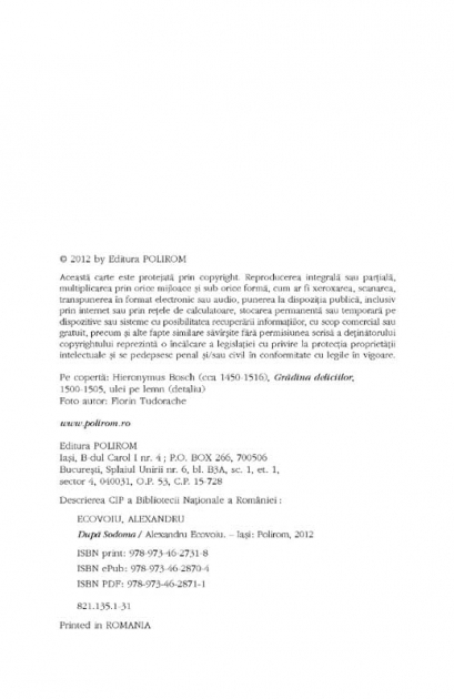 Comandă online cartea "După Sodoma" isbn 9789734627318 scrisă de Alexandru Ecovoiu, tiparită la editura Polirom face parte din colecția Fiction Ltd. cu plata ramburs sau online cu cardul. Momentan titlul "După Sodoma" nu este disponibil însa vă puteți înscrie pentru a fi notificat în momenul reaprovizionarii.