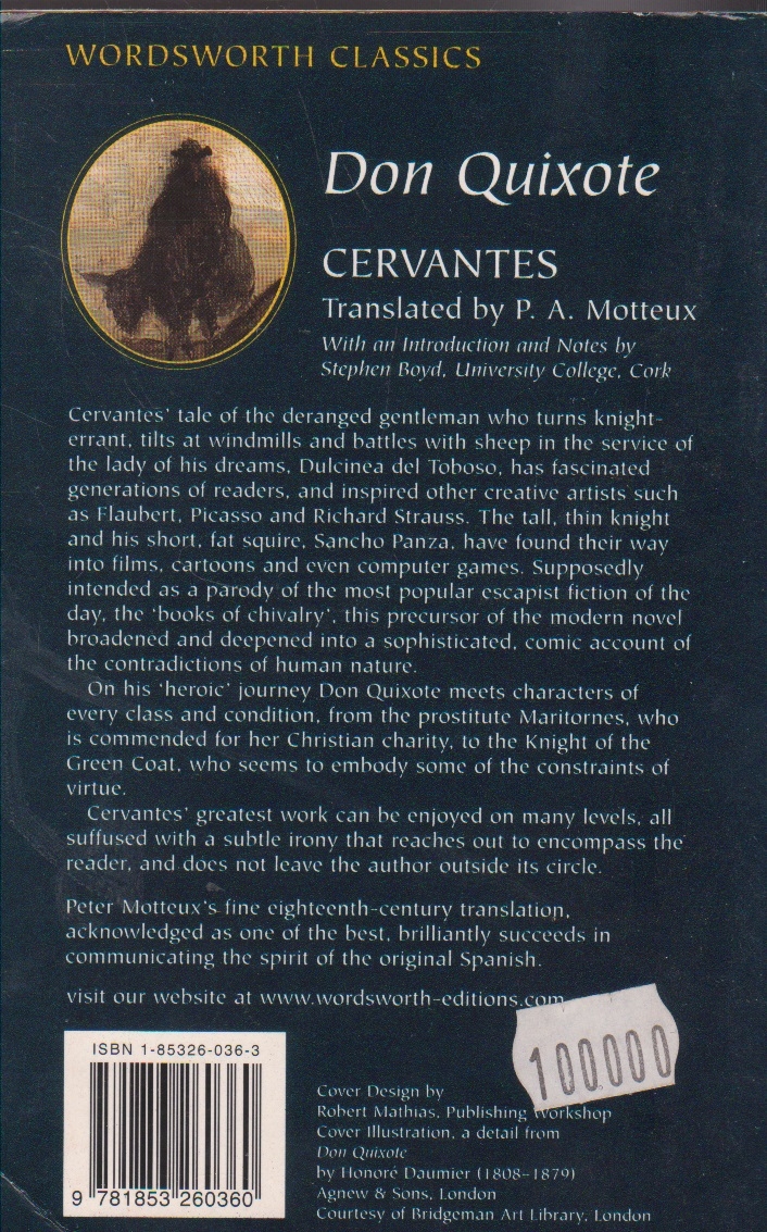 Cervantes' tale of the deranged gentleman who turns knight-errant have found its way into films, cartoons and even computer games. Intended as a parody of the most popular escapist fiction, the 'books of chivalry', this precursor of the modern novel broadened and deepened into a sophisticated, comic account of the contradictions of human nature.