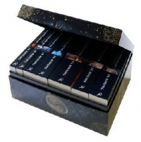 A boxed set, including the titles "Harry Potter and the Philosopher's Stone", "Harry Potter and the Chamber of Secrets", "Harry Potter and the Prisoner of Azkaban", "Harry Potter and the Goblet of Fire", "Harry Potter and the Order of the Phoenix", "Harry Potter and the Half-Blood Prince" and "Harry Potter and the Deathly Hallows".
