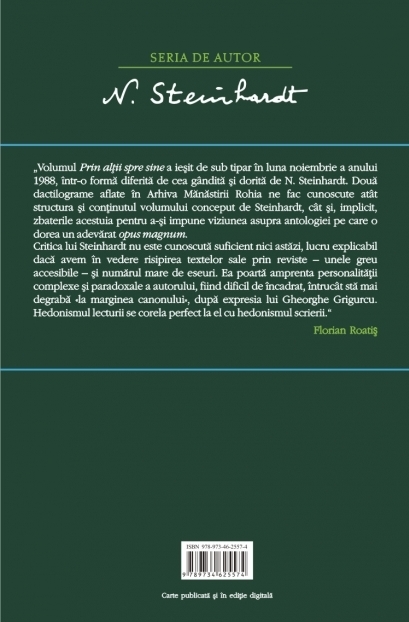 Critica lui Steinhardt nu este cunoscuta suficient nici astazi, lucru explicabil daca avem in vedere risipirea textelor sale prin reviste – unele greu accesibile – si numarul mare de eseuri. Ea poarta amprenta personalitatii complexe si paradoxale a autorului, fiind dificil de incadrat, intrucit sta mai degraba «la marginea canonului», dupa expresia lui Gheorghe Grigurcu. Hedonismul lecturii se corela perfect la el cu hedonismul scrierii.” (Florian Roatis)
