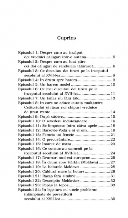Editia a IV-a Roman distins cu Premiul pentru proza al Uniunii Scriitorilor din Romania In secolul al XVII-lea, Barzovie-Voda, domn al Moldovei mazilit, insotit de spatarul Vulture si de rapsodul Broantes, porneste intr-o calatorie spre Stambul pen-tru a incerca sa isi recistige tronul pierdut. In acelasi timp, „preacuviosii” calugari Metodiu si Iovanut au misiunea secreta de a ajunge la Roma ca sa il implore pe Papa sa incheie o alianta cu Moldova, pentru a anihila stapinirea otomana. In drumul lor, ei intilnesc tot felul de personaje pitoresti, fiecare avind propria poveste uluitoare, prilej pentru nenumarate peripetii narate cu un umor debordant.