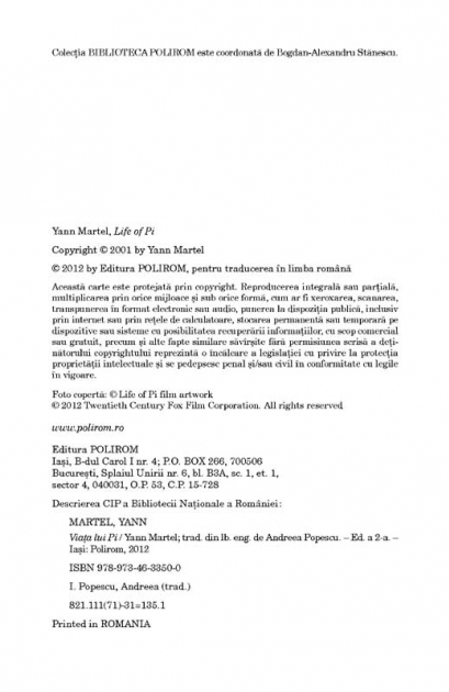 Proza XXI. cu plata ramburs sau online cu cardul. Momentan titlul "Viața lui Pi" nu este disponibil însa vă puteți înscrie pentru a fi notificat în momenul reaprovizionarii.">