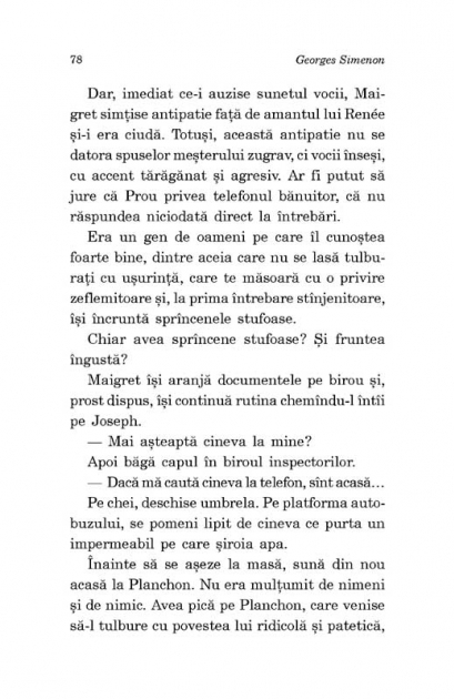Traducere de Nicolae Constantinescu Al 68-lea volum din seria Maigret Leonard Planchon a preluat, dupa retragerea patronului sau, o mica afacere destul de prospera. Mai multe simbete la rind, el vine la Politia Judiciara sa stea de vorba cu comisarul Maigret, insa pleaca intotdeauna inainte de a fi primit. „Clientul de simbata” se prezinta pina la urma acasa la comisar, ca sa-i destainuie o idee care il obsedeaza. Nedorind sa-si piarda afacerea si fiica, Planchon nu vede alta solutie decit aceea de a-si ucide sotia si pe amantul acesteia, Roger Prou, un barbat chipes care ii este angajat. Insa, de lunea urmatoare, Planchon nu ii mai da nici un semn lui Maigret, caruia ii promisese sa-l sune in fiecare zi. Ceea ce il face pe comisar sa o interogheze pe sotia lui Planchon, de la care afla ca acesta i-ar fi cedat afacerea lui Prou cu doua saptamini inainte, urmind sa paraseasca orasul si sa accepte divortul…
