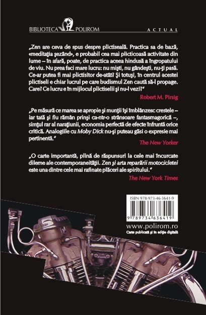 „O carte importanta, plina de raspunsuri la cele mai incurcate dileme ale contemporaneitatii. Zen si arta repararii motocicletei este una dintre cele mai rafinate placeri ale spiritului.” (The New York Times)