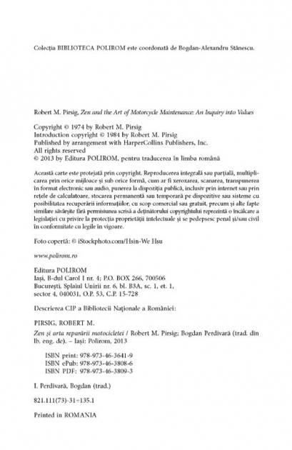 Actual. cu plata ramburs sau online cu cardul. Momentan titlul "Zen și arta reparării motocicletei" nu este disponibil însa vă puteți înscrie pentru a fi notificat în momenul reaprovizionarii.">