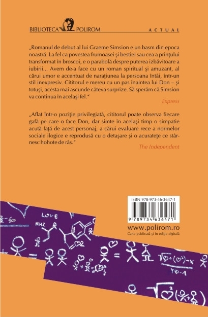 „Romanul de debut al lui Graeme Simsion e un basm din epoca noastra. La fel ca povestea frumoasei si bestiei sau cea a printului transformat in broscoi, e o parabola despre puterea izbavitoare a iubirii... Avem de-a face cu un roman spiritual si amuzant, al carui umor e accentuat de naratiunea la persoana intii, intr-un stil inexpresiv. Cititorul e mereu cu un pas inaintea lui Don – si totusi, acesta mai ascunde citeva surprize. Sa speram ca Simsion va continua in acelasi fel.” (Express)