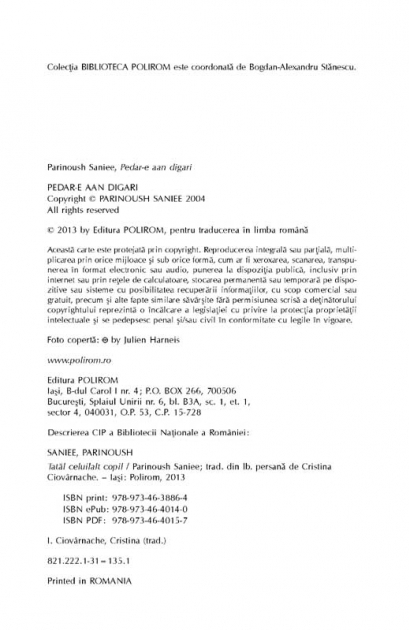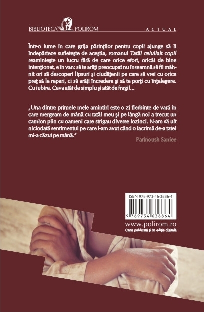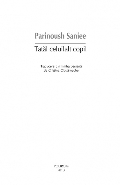 Comandă online cartea "Tatăl celuilalt copil" la 52,25 lei isbn 9789734638864 scrisă de Parinoush Saniee, tiparită la editura Polirom face parte din colecția BIBLIOTECA POLIROM -> Actual. cu plata ramburs sau online cu cardul. Momentan titlul "Tatăl celuilalt copil" nu este disponibil însa vă puteți înscrie pentru a fi notificat în momenul reaprovizionarii.