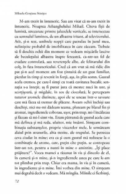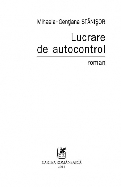 Mihaela-Gentiana Stanisor ne asaza in fata vietii sale interioare, cea de toate zilele. Compusa si descompusa intr-un ritm pe care doar jocul tragic de-a moartea i-l poate impune, proza aceasta cu infiltratii autobiografice tinde sa figureze un personaj polimorfic, polifonic, in care cititorul e chemat sa descopere frinturi de chip si gind, ale autoarei si ale sale, printr-o tensiune care-l prinde-n lanturi si, mai apoi, il desprinde, brusc, de lumea in care obisnuia, linistit, sa viseze. Fictiunea ramine singurul univers in care angoasa existentiala (de)savirseste fiinta. „De obicei doliul se insoteste cu un sentiment apasator, care iti ingreuneaza limba si iti slabeste simtul observatiei. Cind cineva apropiat iti moare, elocventa e inutila si talentul e neavenit. Dar la Mihaela-Gentiana Stanisor lucrurile au luat-o pe alt fagas: moartea mamei i-a trezit virtuti de povestitoare, ca intr-o izbucnire a traumelor din copilarie. Numai ca amintirile de aici nu sunt ale copilei de atunci, fiinta necizelata si spontana, ci ale scriitoarei de azi, intelectuala trecind totul prin filtru cult. Rezultatul e o proza vie, neasteptat de intensa. E un patos al sfisierii aici, dar un patos care, atunci cind Mihaela-Gentiana Stanisor nu cade in duiosia de sine insasi, cum se intimpla pe alocuri, da nastere unei literaturi de calitate. E aceasta proza feminina? Da, sub unghiul visceral al zvircolirii continue. Nu, daca ii judecam ran-gul elevat la care e ridicata zvircolirea. Unele pagini sunt atit de aspre, ca lectura lor estetica este improprie, caz in care cititorul se lasa absorbit de spectacolul unei cruzimi cum doar in copilarie poti intilni. Si atunci iti dai seama ca volumul n-a fost scris din ambitie culturala, ci din nevoia de a supravietui launtric. Reteta i-a fost de folos Mihaelei-Gentiana Stanisor, dovada ca Lucrare de autocontrol apare acum, dupa ce ani de zile autoarei i-a fost teama ca va innebuni inainte s-o vada publicata.” (Sorin Lavric)