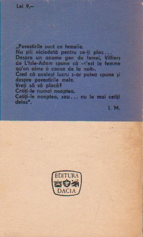 Comandă online cartea "Cetiti-le noaptea" la 13,60 lei scrisă de Ion Minulescu, tiparită la editura Dacia face parte din colecția Restituiri în anul 1973. Livrare din stoc cu plata ramburs sau online cu cardul.