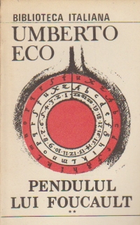 Pendulul lui Foucault este un roman elaborat cu ingeniozitate inginereasca, in care misterul ia nastere printr-o banala intamplare. Trei redactori ai unei edituri de texte ezoterice construiesc, printr-un pur joc intelectual, ipoteza misterioasa a unui Complot urias, initiat de Cavalerii Templieri (dupa dizolvarea Ordinului de catre regele Frantei) pentru pastrarea in custodie a Secretului absolut al cunoasterii si al puterii. Tot jocul porneste de la un manuscris delirant si ia proportiile unui „vartej“ care, de la un anumit punct, nu mai poate fi dominat de initiatorii lui. Cuvintele (semnele) se razbuna chiar pe cei care le manevreaza, in momentul in care acestia transforma jocul combinatoriu in scop in sine.