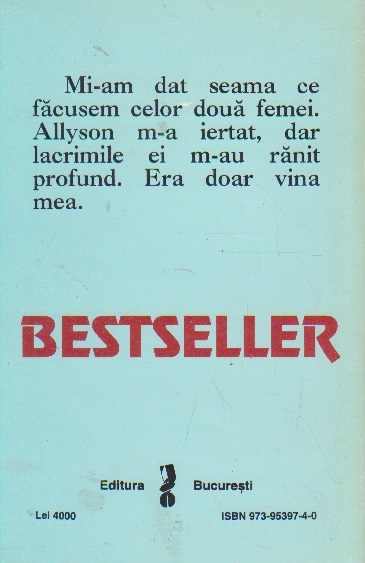 Comandă online cartea "Allyson" la 10,50 lei scrisă de Sidney Sheldon, tiparită la editura Bucuresti cu un număr de 207 pagini categorie Carti de dragoste, Beletristică și critică. cu plata ramburs sau online cu cardul. Momentan titlul "Allyson" nu este disponibil însa vă puteți înscrie pentru a fi notificat în momenul reaprovizionarii.