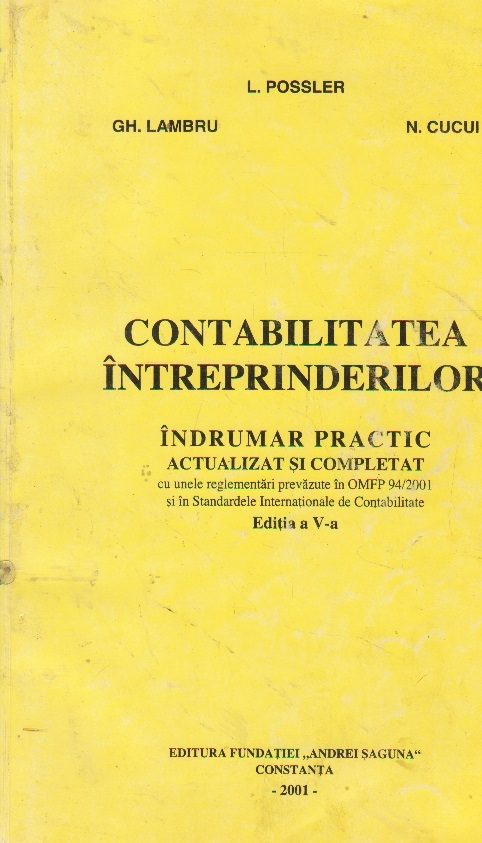 Comandă online cartea "Contabilitatea intreprinderilor - indrumaar practic actualizat si completat cu unele reglementari prevazute in OMFP 94/2001 si in Standardele Internationaale de Contabilitate, Editia a V-a" la 15,90 lei scrisă de Ladislau Possler, tiparită la editura Editura Fundatiei Andrei Saguna în anul 2001 cu un număr de 393 pagini. cu plata ramburs sau online cu cardul. Momentan titlul "Contabilitatea intreprinderilor - indrumaar practic actualizat si completat cu unele reglementari prevazute in OMFP 94/2001 si in Standardele Internationaale de Contabilitate, Editia a V-a" nu este disponibil însa vă puteți înscrie pentru a fi notificat în momenul reaprovizionarii.