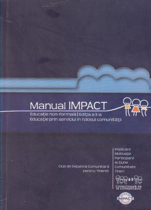 Comandă online cartea "Manual Impact. Ghid pentru dezvoltarea unui club de tineret bazat pe metoda educatiei prin serviciul in folosul comunitatii" la 26,40 lei, tiparită la editura Fundatia Noi Orizonturi în anul 2009 cu un număr de 344 pagini categorie Psihologie sociala, Psihologie. cu plata ramburs sau online cu cardul. Momentan titlul "Manual Impact. Ghid pentru dezvoltarea unui club de tineret bazat pe metoda educatiei prin serviciul in folosul comunitatii" nu este disponibil însa vă puteți înscrie pentru a fi notificat în momenul reaprovizionarii.