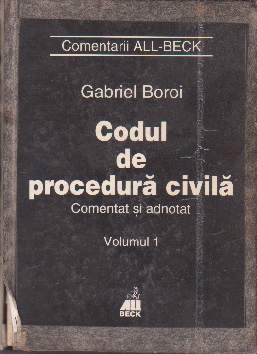 Comandă online cartea "Codul de procedura civila comentat si adnotat. Volumul I" la 20,10 lei scrisă de Gabriel Boroi, tiparită la editura All Beck în anul 2001 cu un număr de 592 pagini. cu plata ramburs sau online cu cardul. Momentan titlul "Codul de procedura civila comentat si adnotat. Volumul I" nu este disponibil însa vă puteți înscrie pentru a fi notificat în momenul reaprovizionarii.