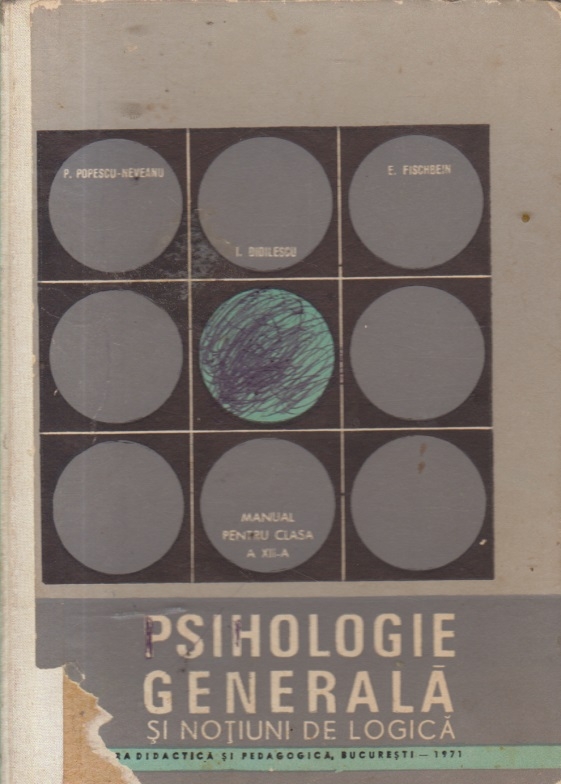 Comandă online cartea "Psihologie generala si notiuni de Logica, Manual pentru clasa a XII-a" la 13,60 lei scrisă de I. Didilescu , Paul Popescu Neveanu, tiparită la editura Didactica si Pedagogica face parte din colecția Clasa a XII-a în anul 1971. cu plata ramburs sau online cu cardul. Momentan titlul "Psihologie generala si notiuni de Logica, Manual pentru clasa a XII-a" nu este disponibil însa vă puteți înscrie pentru a fi notificat în momenul reaprovizionarii.
