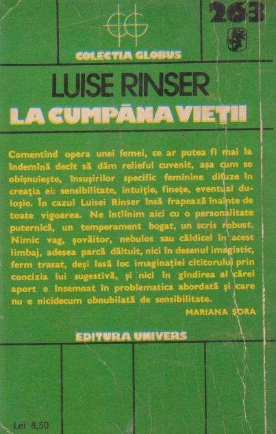 Comandă online cartea "La cumpana vietii" la 10,50 lei scrisă de Luise Rinser, tiparită la editura Univers face parte din colecția Globus în anul 1975. cu plata ramburs sau online cu cardul. Momentan titlul "La cumpana vietii" nu este disponibil însa vă puteți înscrie pentru a fi notificat în momenul reaprovizionarii.