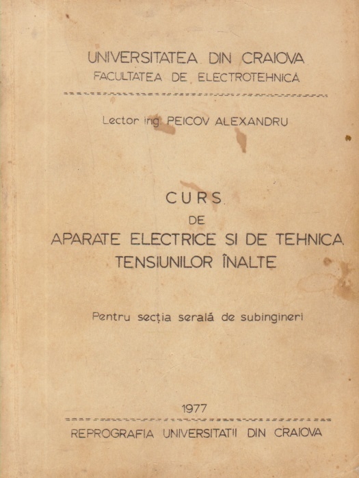 Comandă online cartea "Curs de aparate electrice si de tehnica tensiunilor inalte - Pentru sectia serala de subingineri" la 20,10 lei scrisă de Alexandru Peicov, tiparită la editura Reprografia Universitatii din Craiova face parte din colecția Facultatea de Electrotehnica în anul 1977. cu plata ramburs sau online cu cardul. Momentan titlul "Curs de aparate electrice si de tehnica tensiunilor inalte - Pentru sectia serala de subingineri" nu este disponibil însa vă puteți înscrie pentru a fi notificat în momenul reaprovizionarii.