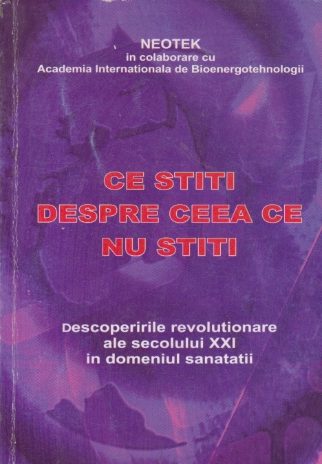 Comandă online cartea "Ce stiti despre ceea ce nu stiti - Descoperirile revolutionare ale secolului XXI in domeniul sanatatii" la 10,50 lei scrisă de Neotek, tiparită la editura Torser cu un număr de 255 pagini categorie Tratamente naturiste / Balneologie, Medicina alternativa, Medicină - Sănătate. cu plata ramburs sau online cu cardul. Momentan titlul "Ce stiti despre ceea ce nu stiti - Descoperirile revolutionare ale secolului XXI in domeniul sanatatii" nu este disponibil însa vă puteți înscrie pentru a fi notificat în momenul reaprovizionarii.