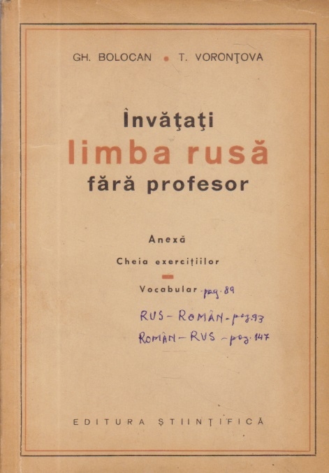 Comandă online cartea "Invatati limba rusa fara profesor: Anexa - Cheia exercitiilor.Vocabular" la 15,90 lei scrisă de T. Vorontova , Gheorghe Bolocan, tiparită la editura Stiintifica în anul 1968 cu un număr de 179 pagini. cu plata ramburs sau online cu cardul. Momentan titlul "Invatati limba rusa fara profesor: Anexa - Cheia exercitiilor.Vocabular" nu este disponibil însa vă puteți înscrie pentru a fi notificat în momenul reaprovizionarii.