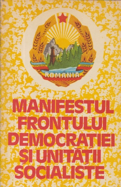 Comandă online cartea "Manifestul Frontului Democratiei si Unitatii Socialiste 1980" la 15,90 lei scrisă de Partidul Comunist Roman, tiparită la editura Bucuresti în anul 1980 cu un număr de 48 pagini. cu plata ramburs sau online cu cardul. Momentan titlul "Manifestul Frontului Democratiei si Unitatii Socialiste 1980" nu este disponibil însa vă puteți înscrie pentru a fi notificat în momenul reaprovizionarii.