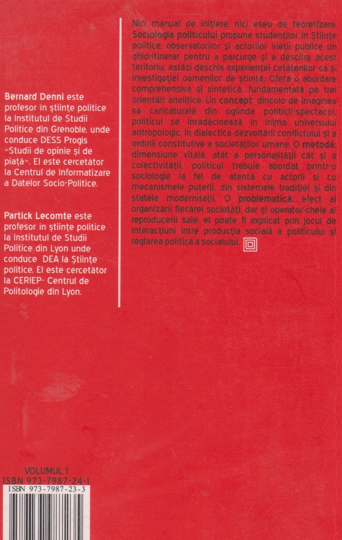 Comandă online cartea "Sociologia Politicului, Volumul I" la 15,90 lei scrisă de Bernard Denni, tiparită la editura Eikon în anul 2004 cu un număr de 278 pagini. cu plata ramburs sau online cu cardul. Momentan titlul "Sociologia Politicului, Volumul I" nu este disponibil însa vă puteți înscrie pentru a fi notificat în momenul reaprovizionarii.