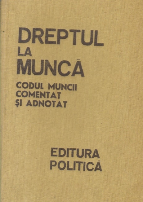 Comandă online cartea "Dreptul la Munca - Codul muncii comentat si adnotat (Sanda Ghimpu)" la 41,20 lei scrisă de Sanda Ghimpu, tiparită la editura Politica în anul 1988 cu un număr de 777 pagini. cu plata ramburs sau online cu cardul. Momentan titlul "Dreptul la Munca - Codul muncii comentat si adnotat (Sanda Ghimpu)" nu este disponibil însa vă puteți înscrie pentru a fi notificat în momenul reaprovizionarii.