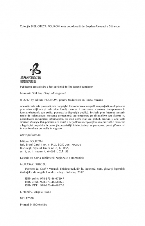 Traducere din limba japoneză, note, glosar şi legendele ilustraţiilor de Angela Hondru