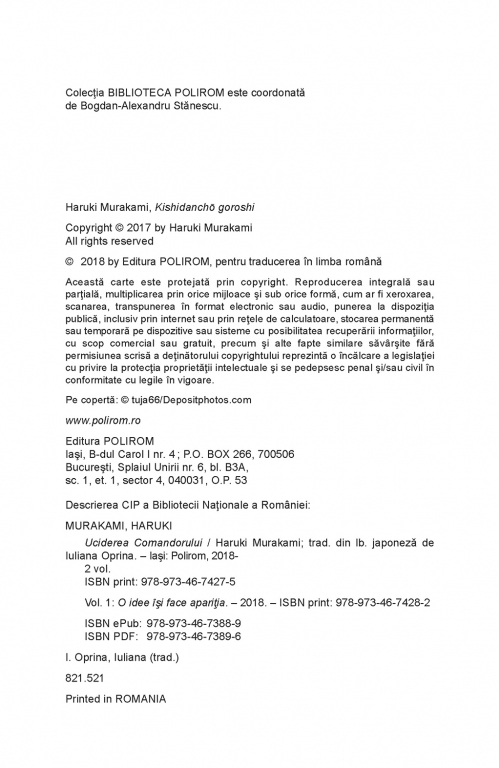 Seria de autor "Haruki Murakami". cu plata ramburs sau online cu cardul. Momentan titlul "Uciderea Comandorului. Volumul I. O idee își face apariția" nu este disponibil însa vă puteți înscrie pentru a fi notificat în momenul reaprovizionarii.">