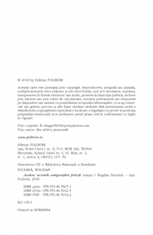 Comandă online cartea "Avalon. Secretele emigranților fericiți" la 52,80 lei isbn 9789734676071 scrisă de Bogdan Suceava, tiparită la editura Polirom face parte din colecția Fiction Ltd. Cartea poate fi livrată în circa 5 zile cu plata ramburs sau online cu cardul.
