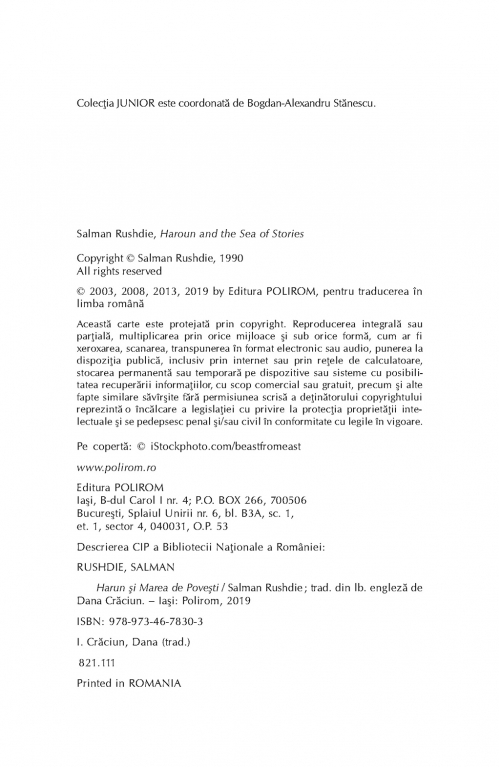 Comandă online cartea "Harun și Marea de Povești" la 47,50 lei isbn 9789734678303 scrisă de Salman Rushdie, tiparită la editura Polirom face parte din colecția JUNIOR. Cartea poate fi livrată în circa 2 zile cu plata ramburs sau online cu cardul.