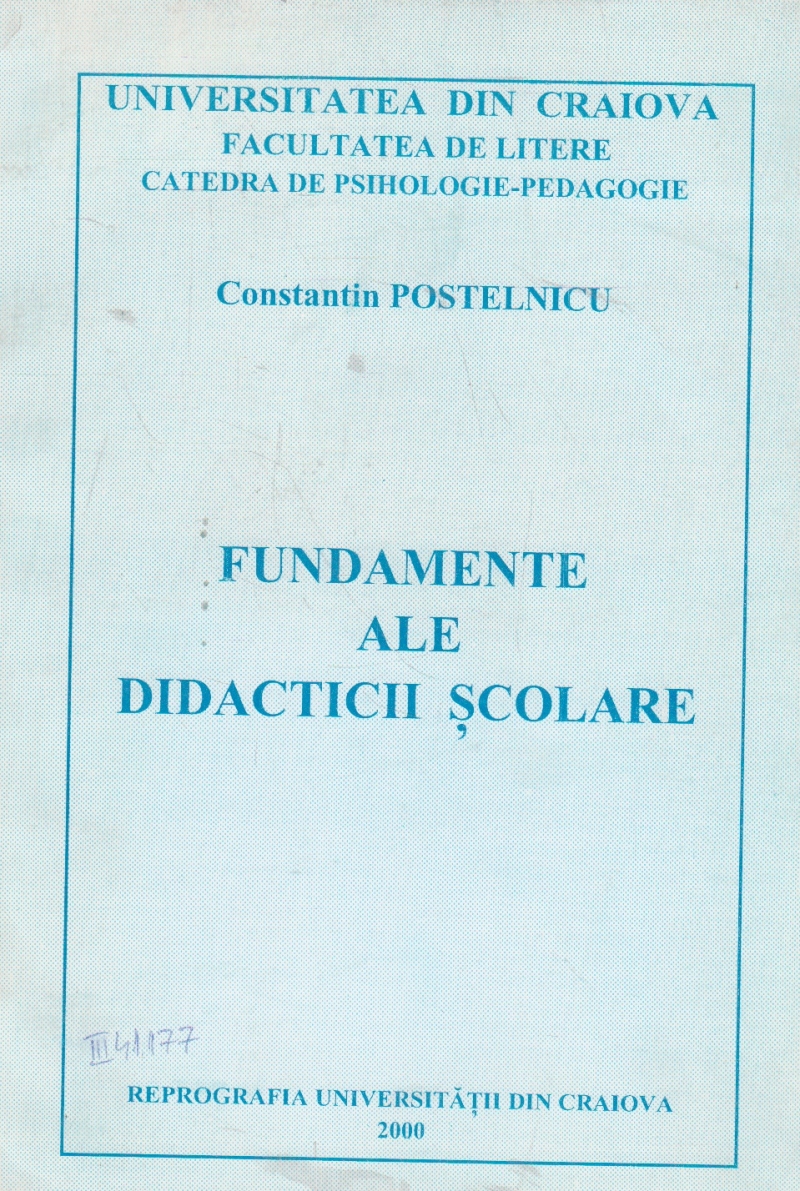 Comandă online cartea "Fundamente ale didacticii scolare" la 26,40 lei scrisă de Constantin Postelnicu, tiparită la editura Reprografia Universitatii din Craiova face parte din colecția Facultatea de Litere în anul 2000. cu plata ramburs sau online cu cardul. Momentan titlul "Fundamente ale didacticii scolare" nu este disponibil însa vă puteți înscrie pentru a fi notificat în momenul reaprovizionarii.