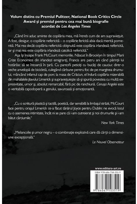 „Cu o scriitură plastică şi tactilă, poetică, dar sensibilă la limbajul străzii, McCourt face pentru oraşul Limerick ce-a făcut tânărul Joyce pentru Dublin: ne evocă locul cu o asemenea intimitate, încât ni se pare că i-am cutreierat şi noi drumurile şi i-am bătut cârciumile.“ New York Times