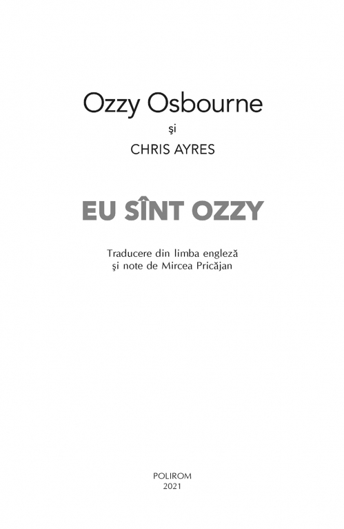 Comandă online cartea "Eu sînt Ozzy" la 75,00 lei isbn 9789734684311 scrisă de Ozzy Osbourne , Chris Ayres, tiparită la editura Polirom face parte din colecția Biblioteca Polirom. Cartea poate fi livrată în circa 5 zile cu plata ramburs sau online cu cardul.