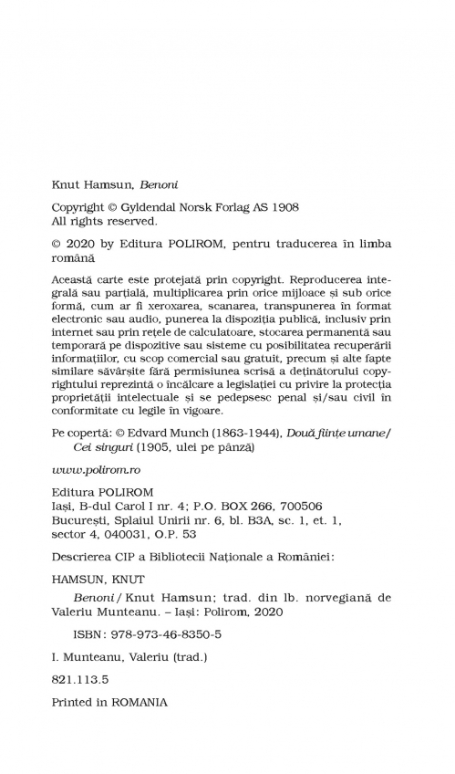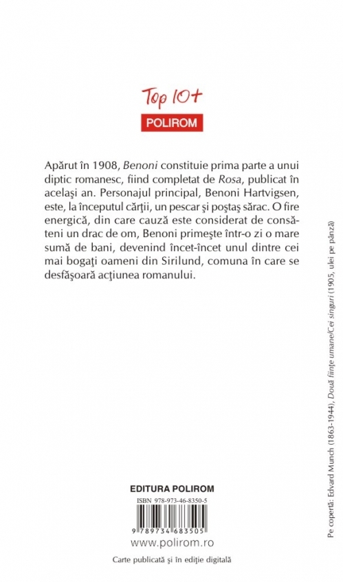 Comandă online cartea "Benoni (ediție de buzunar)" la 26,40 lei isbn 9789734683505 scrisă de KNUT HAMSUN, tiparită la editura Polirom face parte din colecția Top 10+. Cartea poate fi livrată în circa 5 zile cu plata ramburs sau online cu cardul.