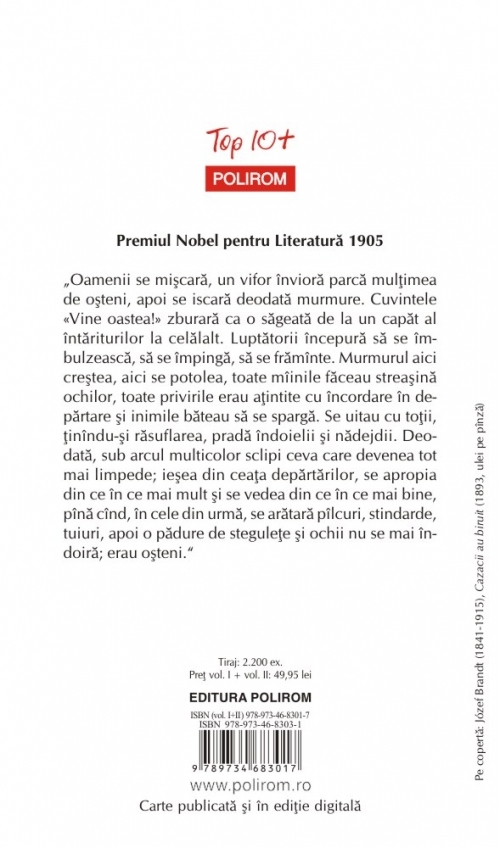 Comandă online cartea "Prin foc și sabie. Vol I+II (ediție de buzunar)" la 52,80 lei isbn 9789734683017 scrisă de Henryk Sienkiewicz, tiparită la editura Polirom face parte din colecția Top 10+. Cartea poate fi livrată în circa 5 zile cu plata ramburs sau online cu cardul.