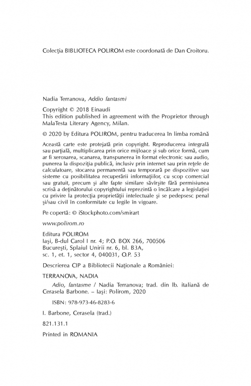 Comandă online cartea "Adio, fantasme" la 10,60 lei isbn 9789734682836 scrisă de Nadia Terranova, tiparită la editura Polirom face parte din colecția BIBLIOTECA POLIROM -> Actual. Cartea poate fi livrată în circa 2 zile cu plata ramburs sau online cu cardul.