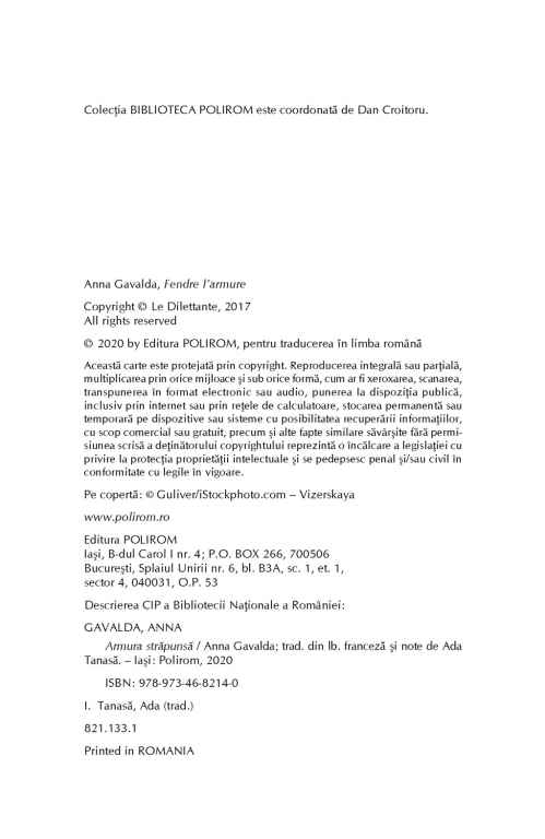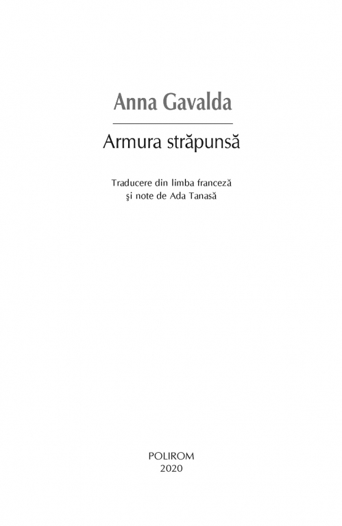 Comandă online cartea "Armura străpunsă" la 15,90 lei isbn 9789734682140 scrisă de Anna Gavalda, tiparită la editura Polirom face parte din colecția BIBLIOTECA POLIROM -> Actual. Cartea poate fi livrată în circa 2 zile cu plata ramburs sau online cu cardul.