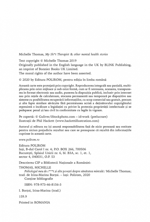 Comandă online cartea "Psihologul meu de c***t și alte povești despre sănătatea mintală" la 15,90 lei isbn 9789734681563 scrisă de Michelle Thomas, tiparită la editura Polirom face parte din colecția Hexagon. Cartea poate fi livrată în circa 2 zile cu plata ramburs sau online cu cardul.