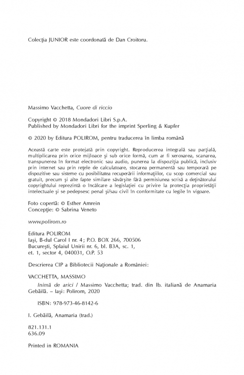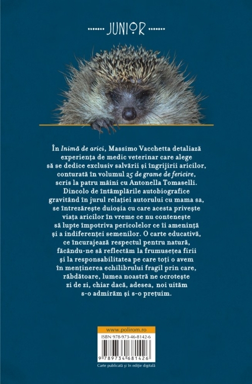 Comandă online cartea "Inimă de arici. Povestea unei mici călăuze care m-a învățat ce înseamnă curajul" la 31,70 lei isbn 9789734681426 scrisă de Massimo Vacchetta, tiparită la editura Polirom face parte din colecția JUNIOR. Cartea poate fi livrată în circa 2 zile cu plata ramburs sau online cu cardul.