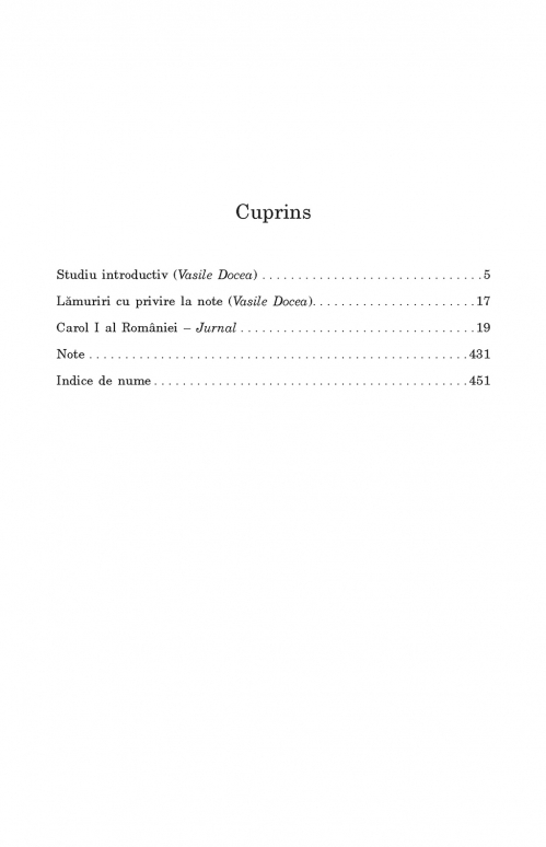 „Carol I al României a fost un rege fără educație regală. Deși se trăgea dintr-o familie princiară, nu a fost pregătit de copil să devină rege, iar biografia sa anterioară venirii în România nu anticipa în niciun fel faptul că avea să devină monarhul acestei țări. A urcat pe tronul românesc mai degrabă prin hazardul unor întîmplări neprevăzute decît prin premeditare. În această privință, destinul său se aseamănă izbitor cu basmele orientale, acelea în care personaje modeste ajung prin forța întîmplării să conducă cetăți sau popoare. Dar domnia lui Carol I, lungă de 48 de ani, nu a fost un basm, ci o realitate. Ea face parte din istoria românilor, și nu oricum, ci ca o epocă memorabilă prin împliniri. Regele fără educație regală a domnit exemplar. Succesele epocii sale au fost numeroase, de la construirea rețelei de căi ferate pînă la încurajarea culturii și educației, de la asigurarea stabilității politice interne pînă la dobîndirea independenței de stat și înscrierea României într-un sistem de alianțe care, decenii la rînd, i-a adus prestigiu și securitate. La toate acestea, Carol I a contribuit consistent. Vor fi fost și lucruri pe care un ochi foarte exigent le-ar putea trece în lista neîmplinirilor. Nu știm însă cum ar fi arătat România fără acest monument de echilibru, conștiinciozitate și devotament care a fost regele Carol I. Putem doar bănui că, fără el, ar fi avut o soartă mai rea.” (Vasile Docea)